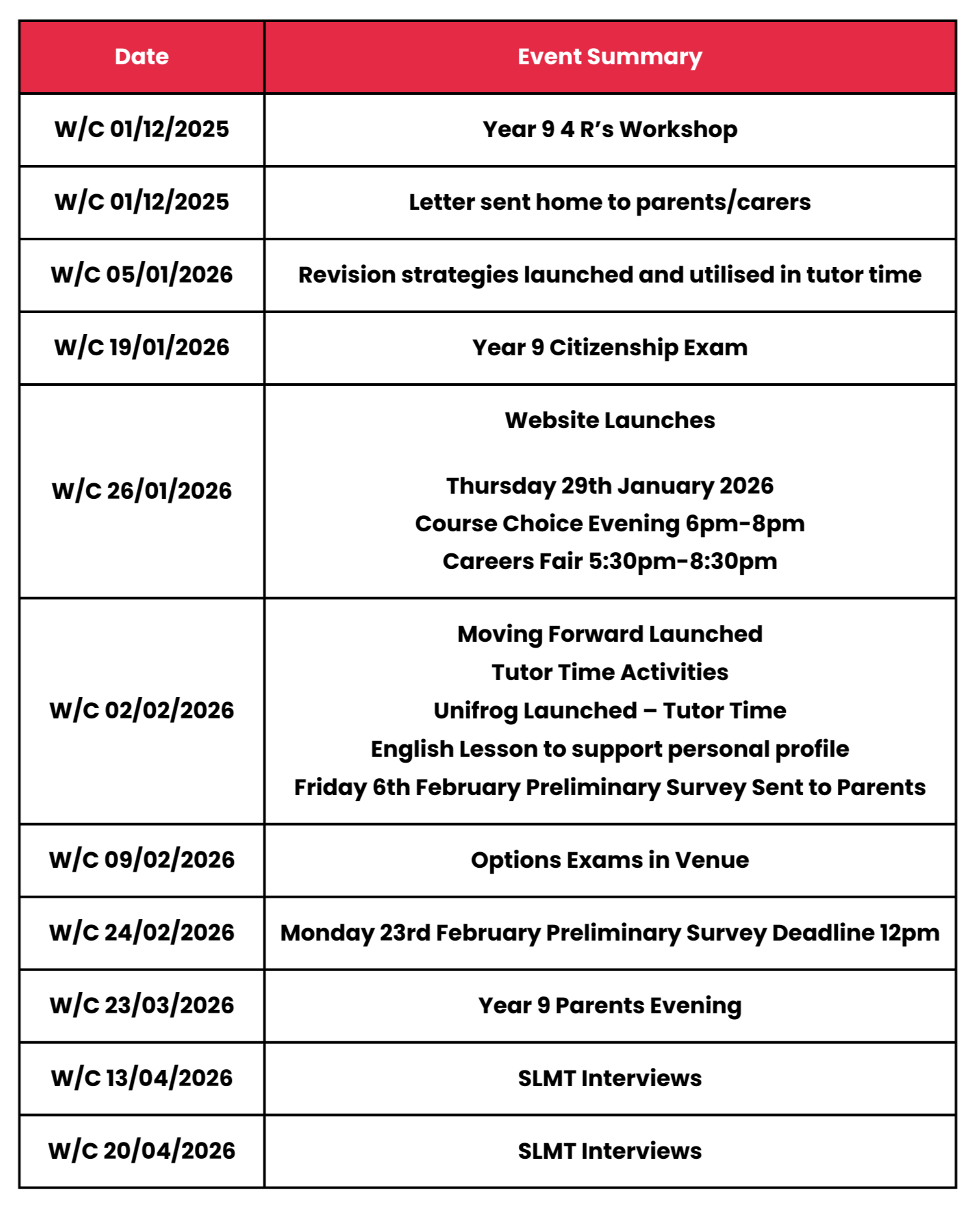 *The Preliminary Course Choice Survey will be sent to your child on Friday 6th February. Please complete with your child and return by Monday 23th February at 12:00pm.